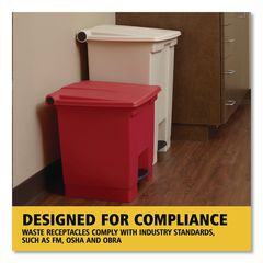 The Rubbermaid Commercial Legacy Step-On Receptacle provides sanitary waste management while the tight-fitting lid helps contain odors. The step-on foot pedal reduces contamination and improves working conditions. High-quality craftsmanship ensures containers get the job done in any environment.